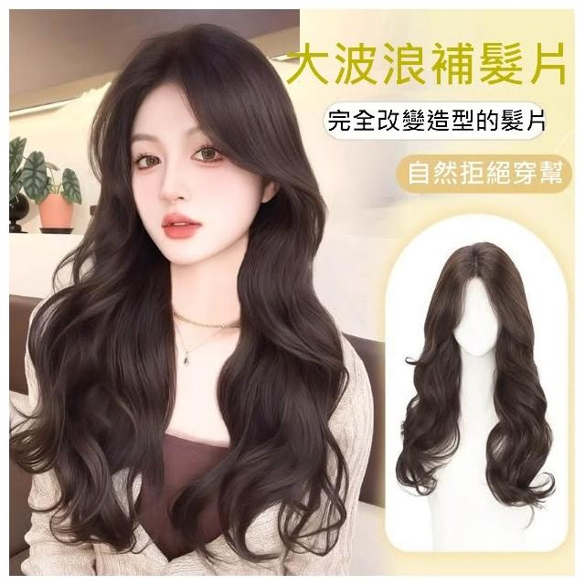 女生頭頂髮片 遮蓋整頭 大波浪髮型 頭頂假髮片- 改變髮型 蓬鬆假髮 真髮混高溫絲【黑二髮品】TGZ5