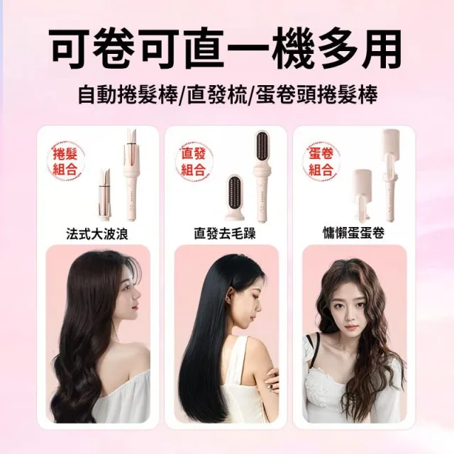 四合一全自動捲髮棒 直髮梳 捲髮器 多功能捲髮棒 電棒捲 可替換頭 新手必備 直髮夾 蛋卷