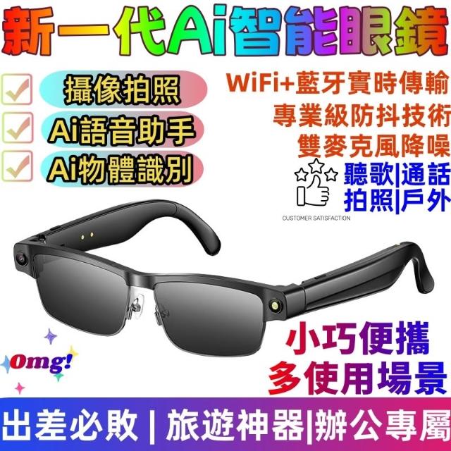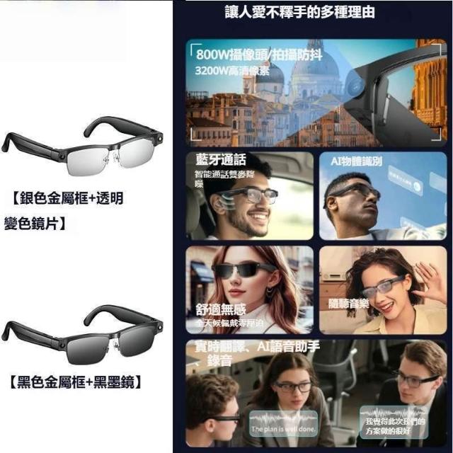 �【台灣發貨 辦公神器 AI智能拍照眼鏡全球翻譯 800W像素防抖技術 藍牙變色眼鏡 藍牙電話聽歌 多功能眼鏡 金層