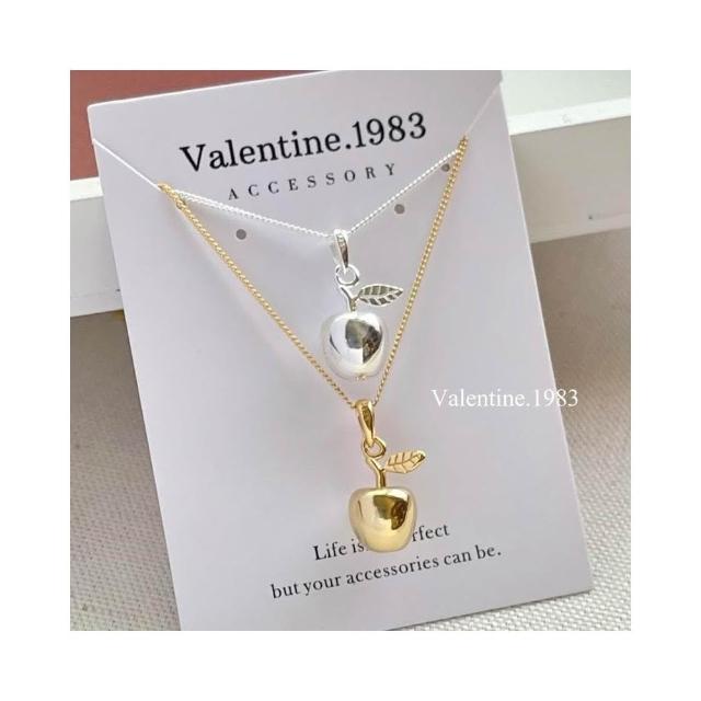 玩美飾集|925純銀 蘋果純銀項鍊 洗澡可戴 銀項鍊 鎖骨鍊 禮物 飾品 金VN0095 銀VN0096
