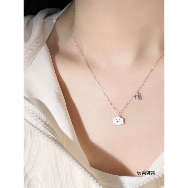 玩美飾集|獨家訂製999足銀 微笑雲朵彩虹 純銀項鍊 雲朵項鍊 微笑項鍊 洗澡可戴 低過敏 送禮 推薦 VN0023