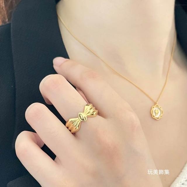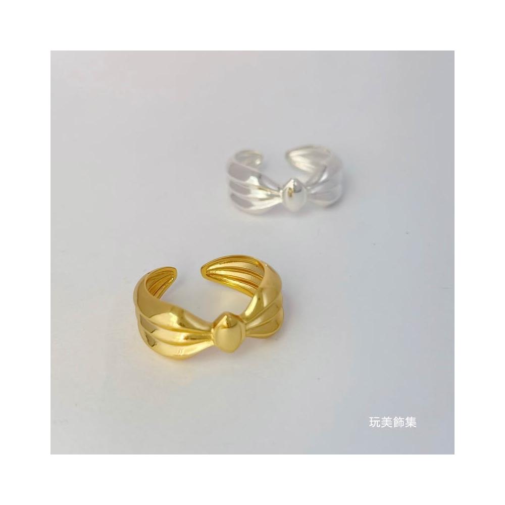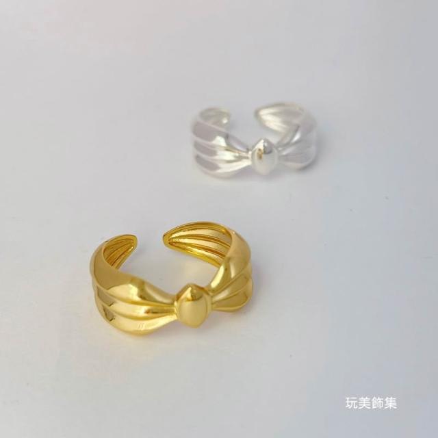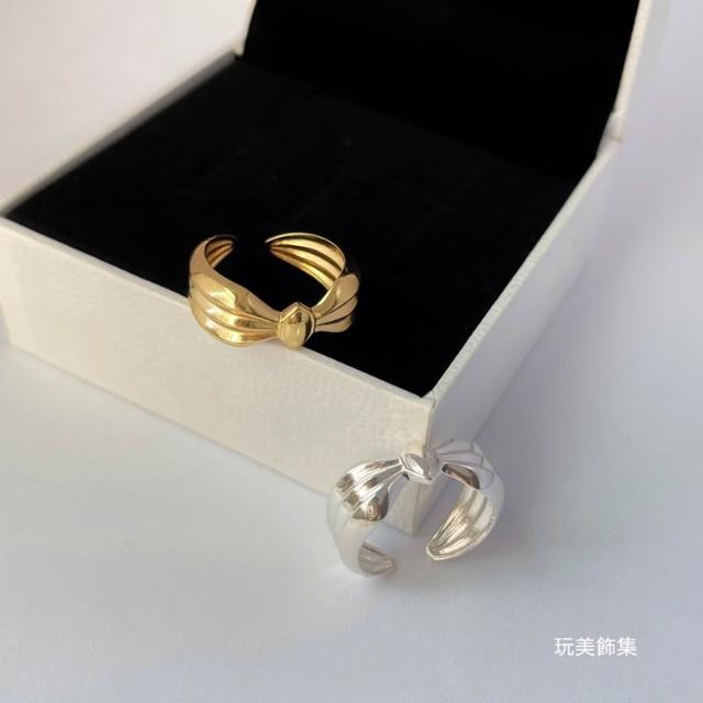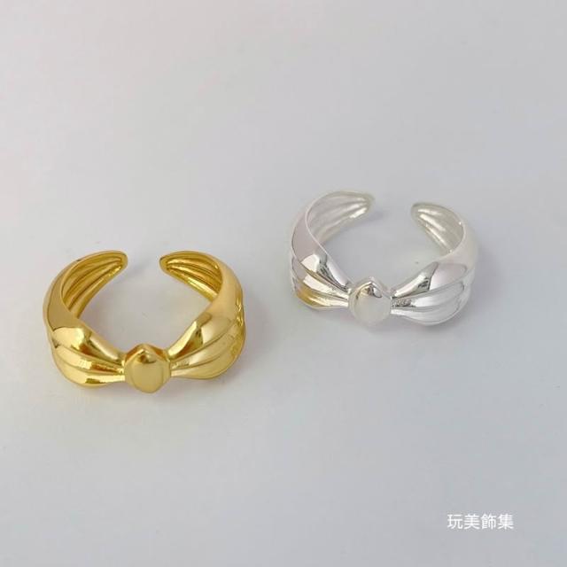 玩美飾集|現貨,S925全純銀 寬版蝴蝶結造型純銀開口戒指 飾品 銀戒 金VR0142/銀VR0143