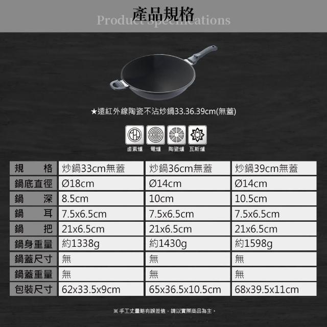 米雅可Miyaco遠紅外線陶瓷不沾炒鍋可用鐵鏟39cm無蓋|Leidea樂德兒