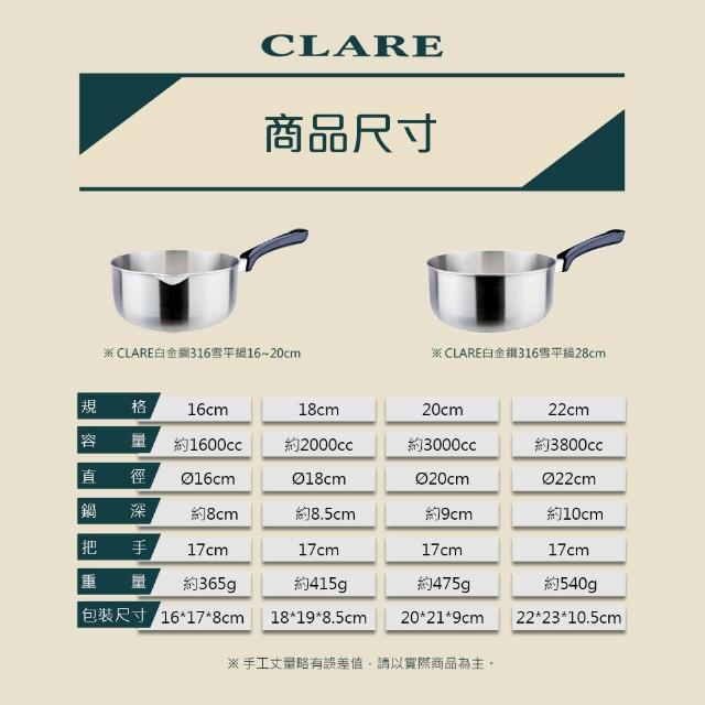 CLARE 可蕾爾白金鋼 316不鏽鋼 雪平鍋 16cm 料理鍋 單把鍋 湯鍋 台灣製造 Leidea 樂德兒 春季廚房換新