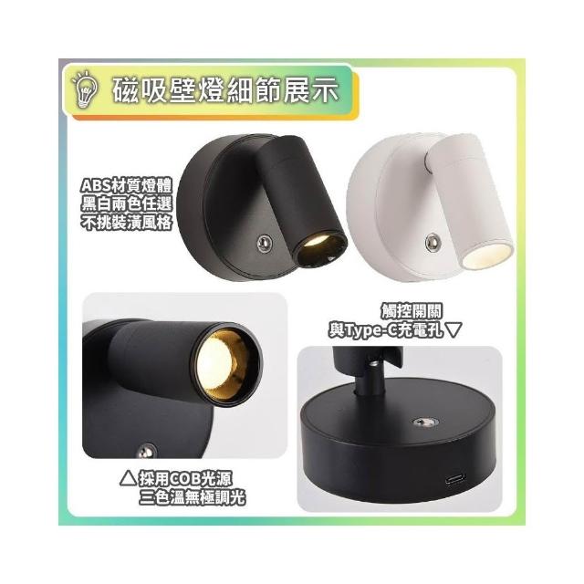 現貨免運×快速出貨▸LED 磁吸壁燈∣免打孔∣三色溫∣小夜燈∣磁吸燈∣床頭燈∣展示燈∣展示櫃∣投射∣夜燈