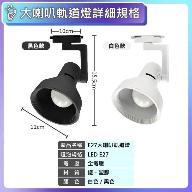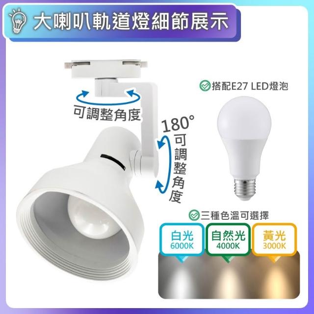 現貨免運×快速出貨▸E27 大喇叭軌道燈∣角度可調∣廣角照明∣LED燈泡∣高光∣E27燈泡∣裝飾燈∣軌道條∣復古型
