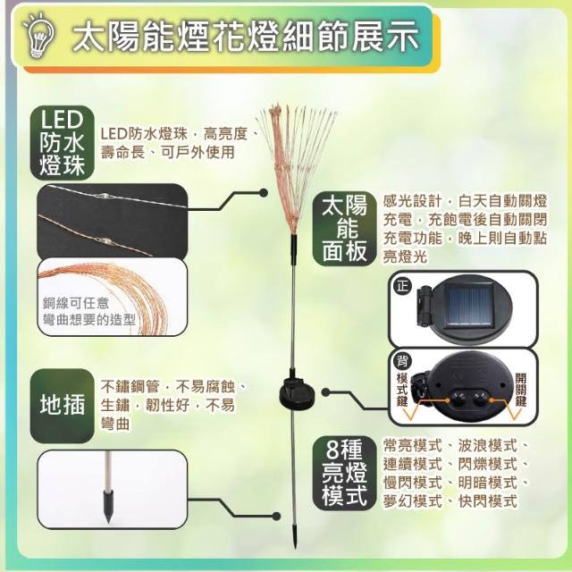 太陽能 200 LED 煙花燈 8種模式 防水 太陽能燈 聖誕佈置 裝飾燈 佈置燈 戶外燈 現貨免運 快速出貨