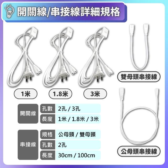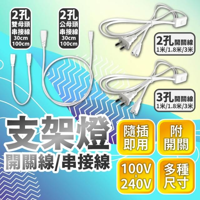支架燈 開關線 串接線 多尺寸 層板燈 開關電源線 T4 T5 T8 二孔 三孔 8字型 1米 現貨免運 快速出貨