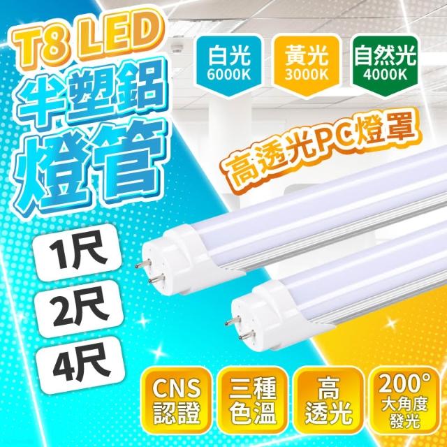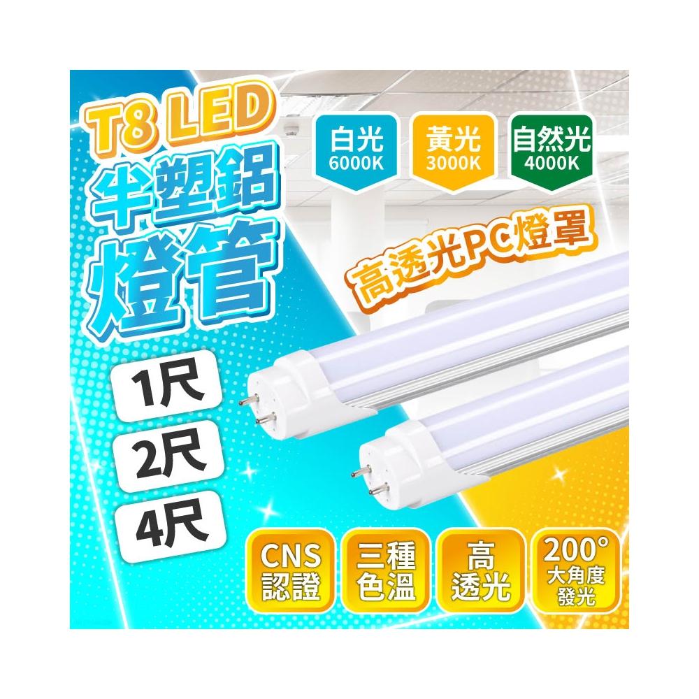 台灣品牌×超低價宅配免運▸十入組 T8 LED 半塑鋁燈管1尺2尺4尺∣LED T8燈管∣LED燈具∣免安定器∣高光