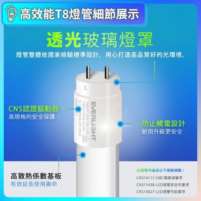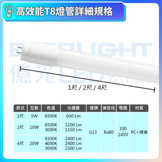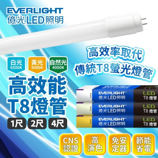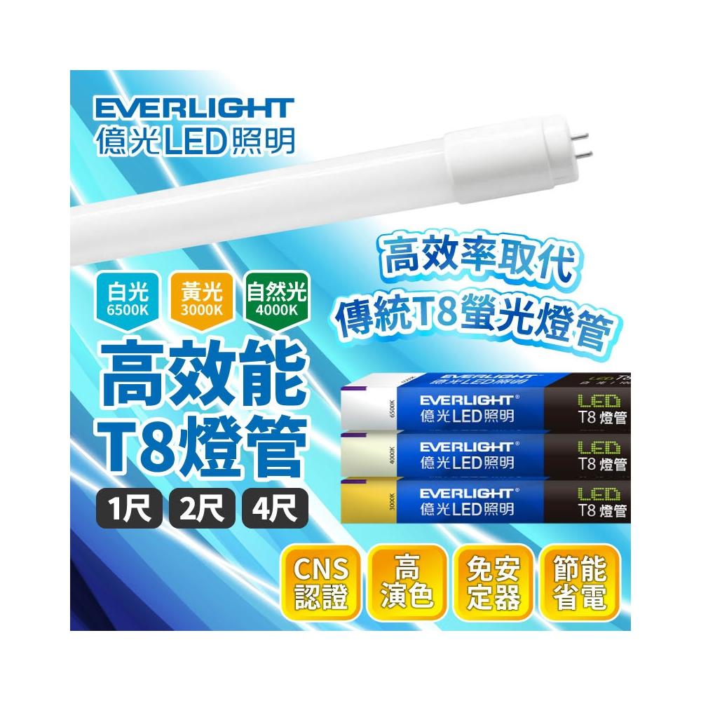 Everlight 億光台灣品牌×超低價宅配免運▸十入組 億光 高效能T8燈管1尺2尺4尺∣免安定器∣LED燈管∣高光∣高演色∣支架燈∣日光燈