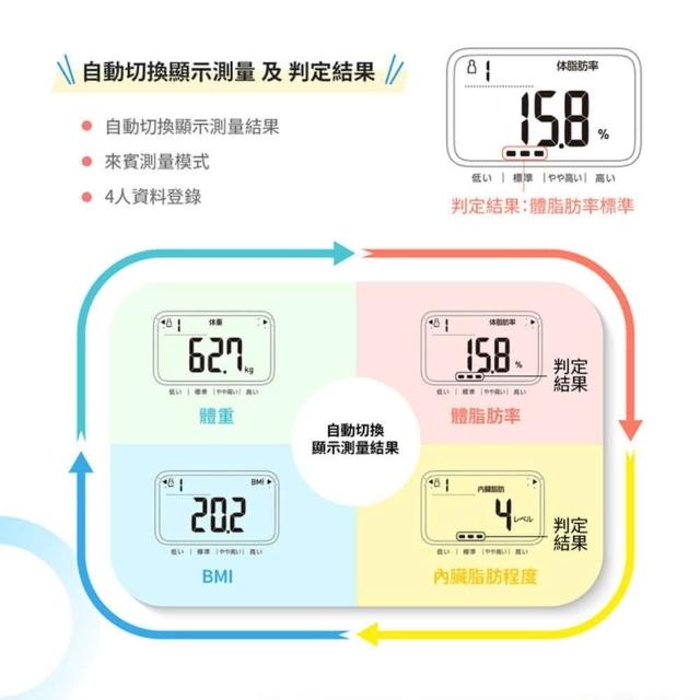 - 測量體脂肪率 (0.1%單位)