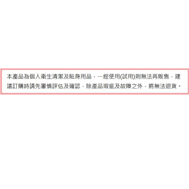 - 個人衛生用品除商品本身有瑕疵外,未拆封商品仍享有十天猶豫期之退貨權利。但已拆封 (如剪標、下水等情形…),依據《通訊交易解除權合理例外情事適用準則》第二條規定,商店無法接受退換貨。
