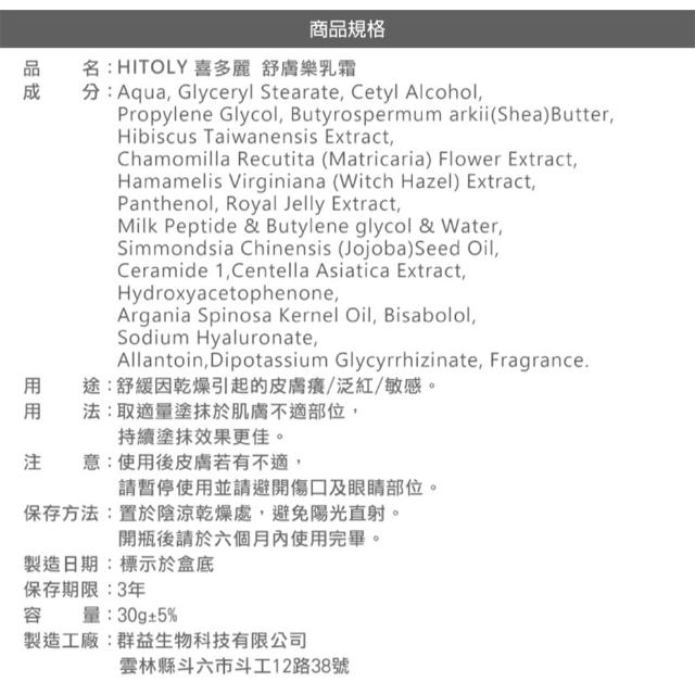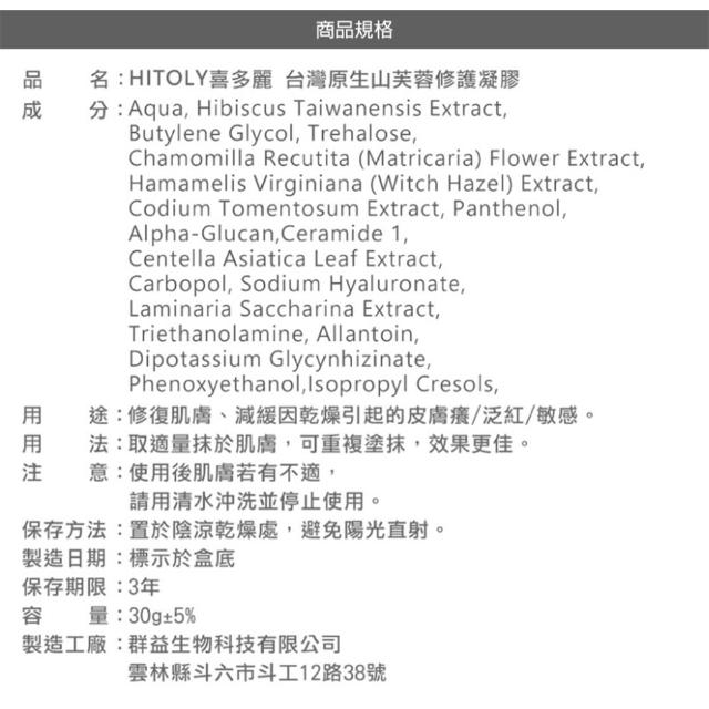 HITOLY 喜多麗山芙蓉修護凝膠+舒膚樂乳霜