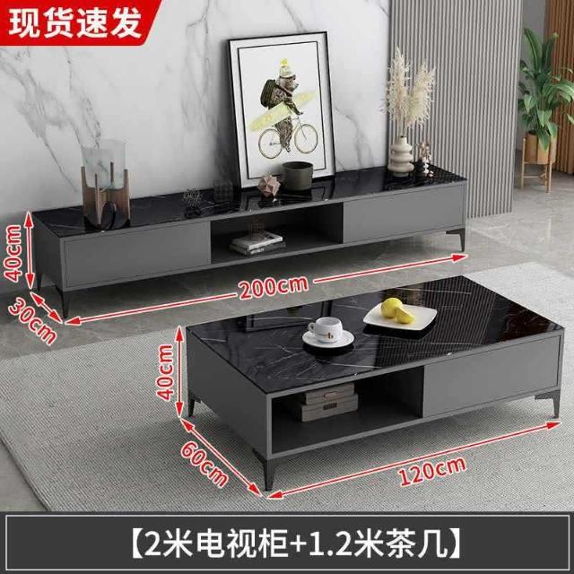 黑色電視櫃茶幾組閤現代簡約小戶型客廳傢用簡易新款落地電視機櫃