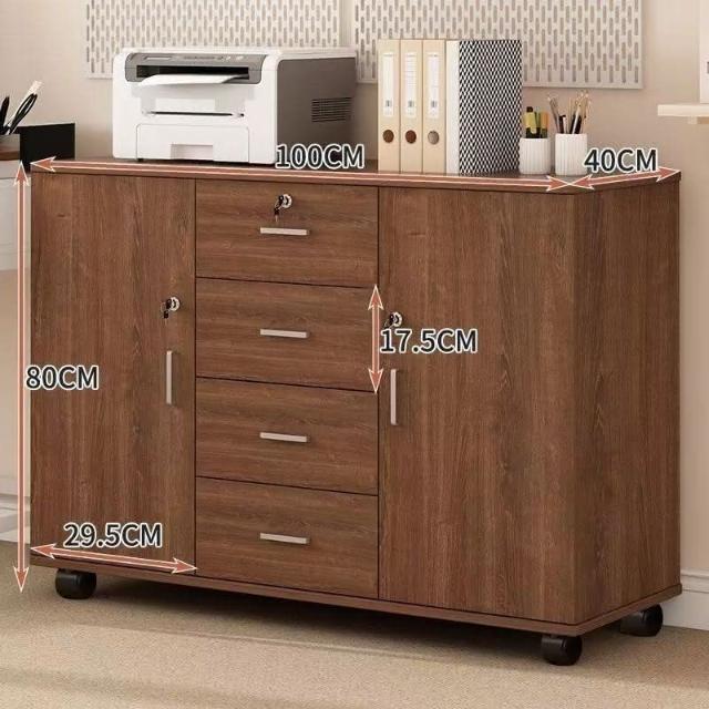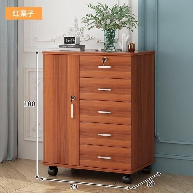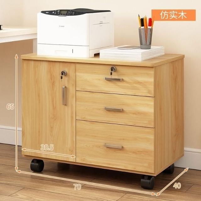 辦公室文件櫃實木帶輪儲物櫃矮帶鎖櫃移動收納櫃多層抽屜櫃床頭櫃