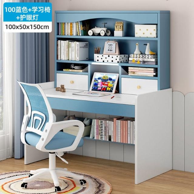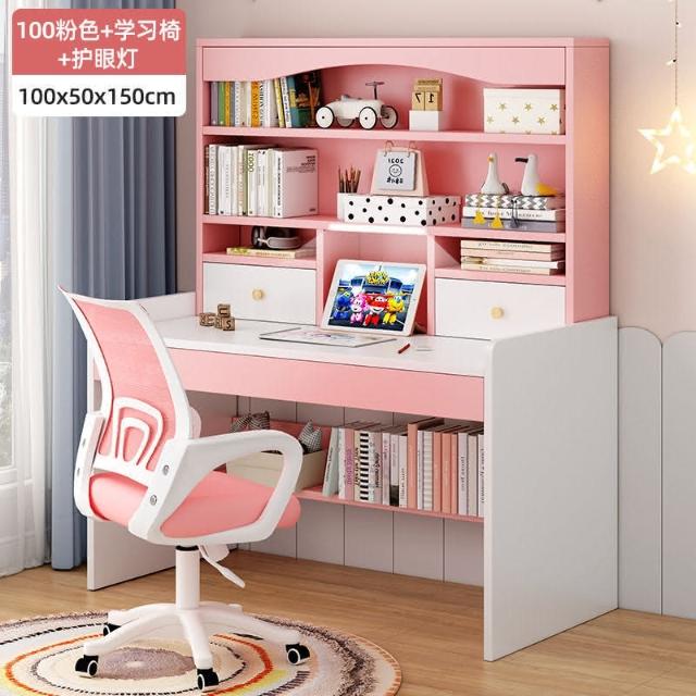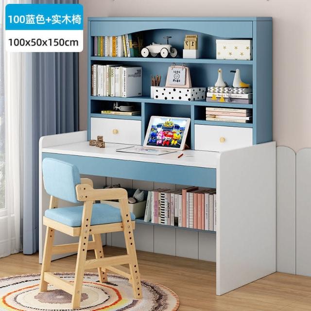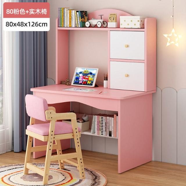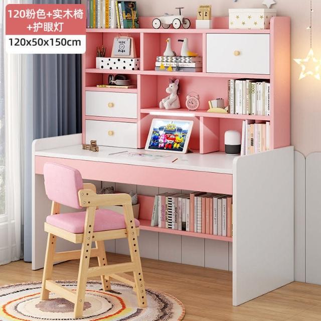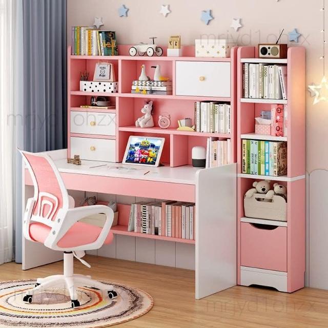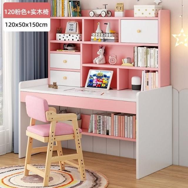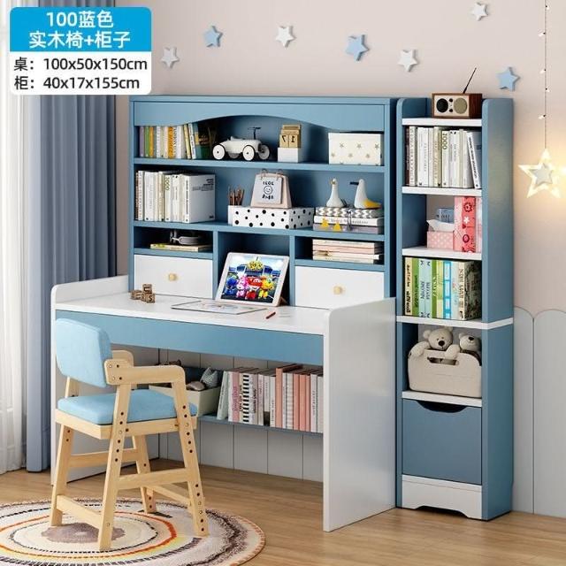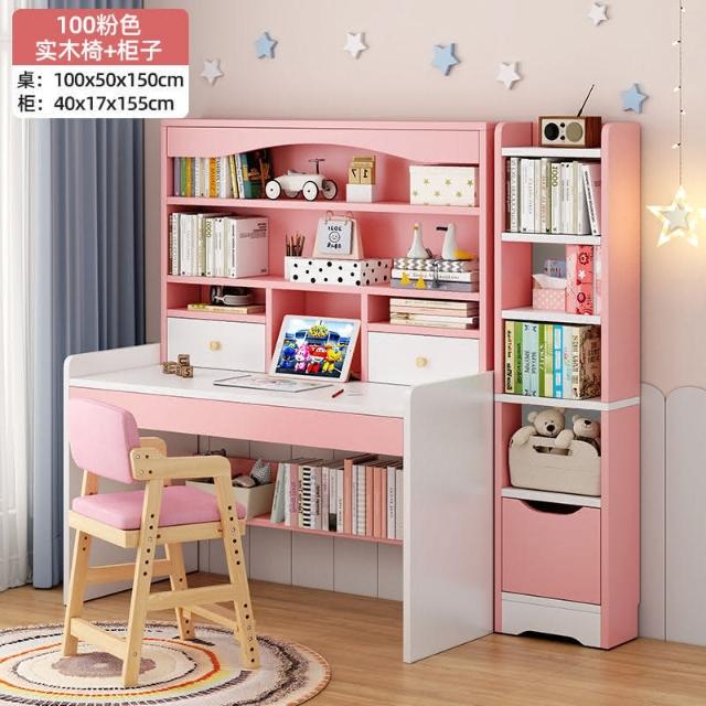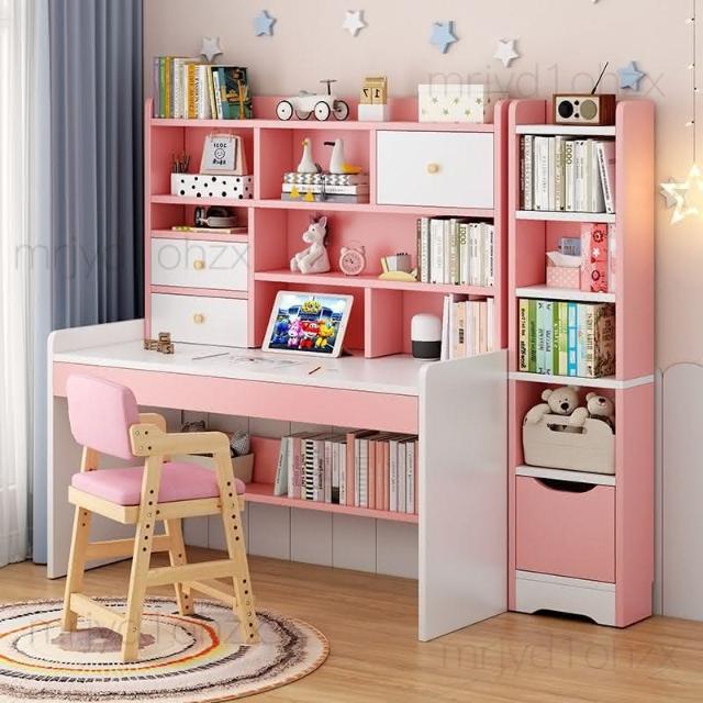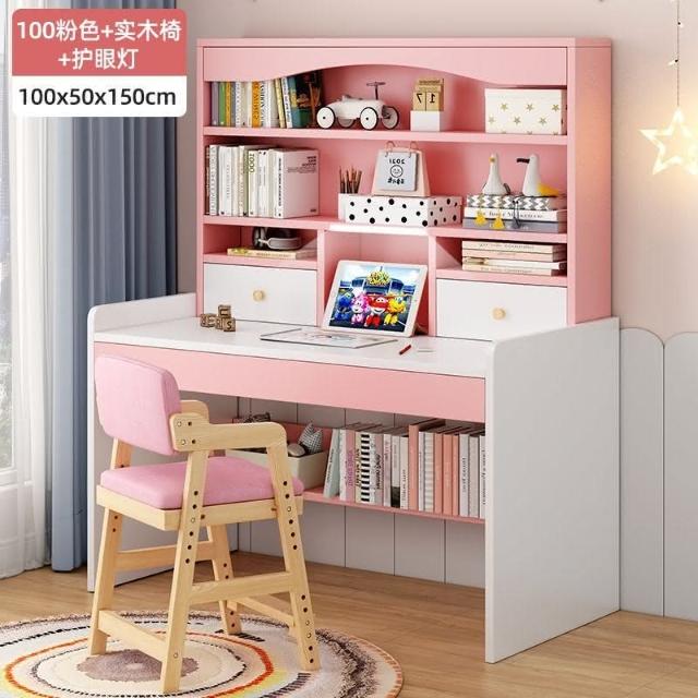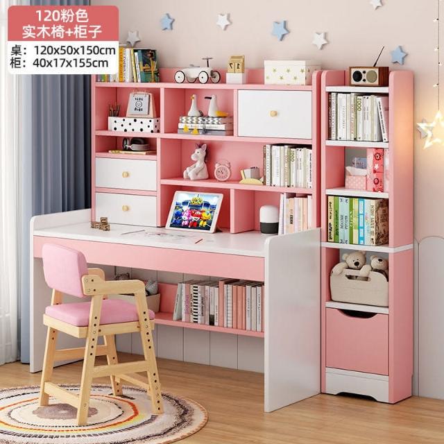 kq兒童書桌書架書櫃一體學生學習寫字桌子家用女孩臥室電腦桌椅套