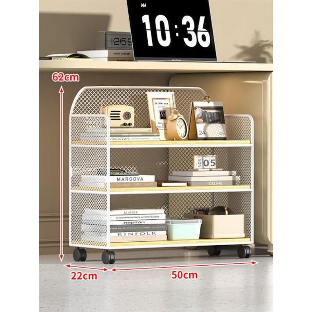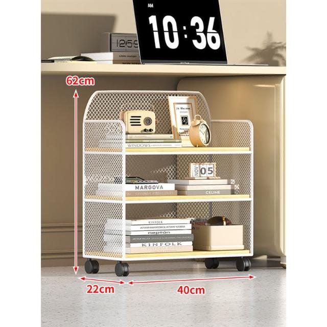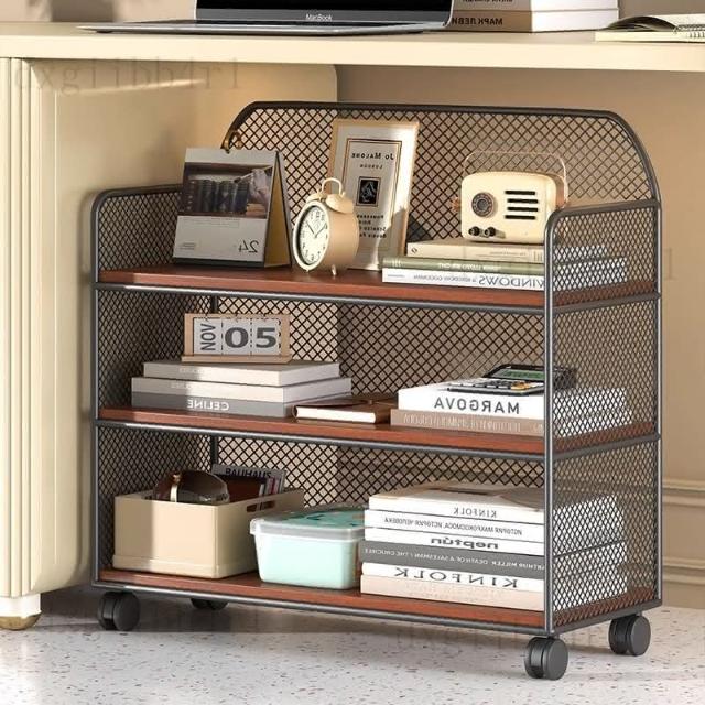 辦公桌桌下置物架可移動文件收納架多功能桌下書櫃臥室帶輪小推車