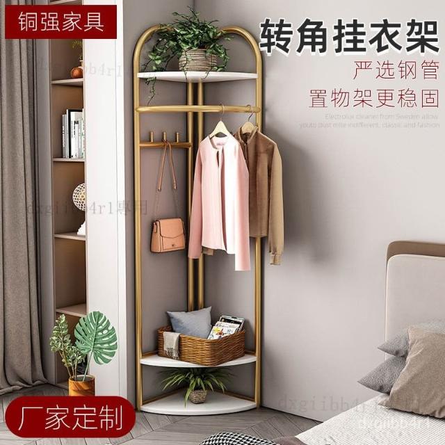 轉角落地式不佔空間掛衣架傢用貼墻衣帽收納架簡易室內三角晾衣架