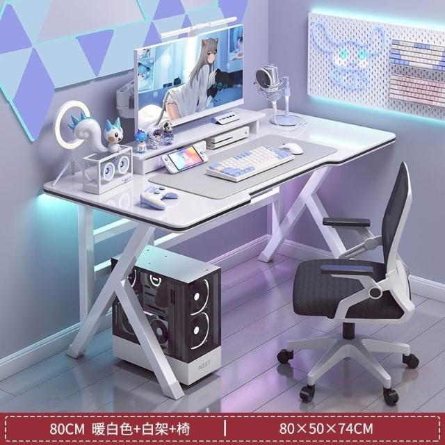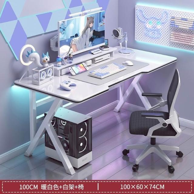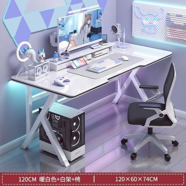 臺式電腦桌白色電競桌組閤網紅主播直播傢用簡約現代書桌遊戲桌