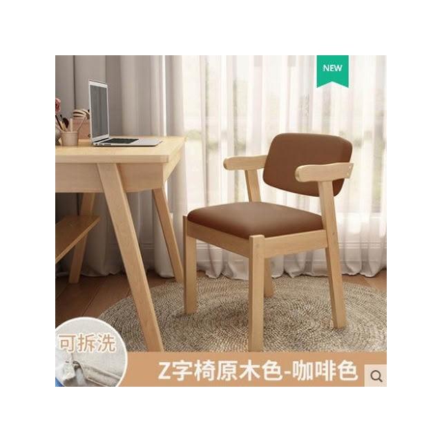實木餐椅傢用北歐現代簡約咖啡廳靠背扶手洽談書桌椅原木休閒椅子