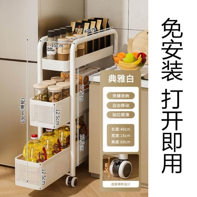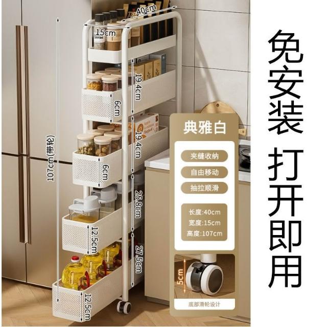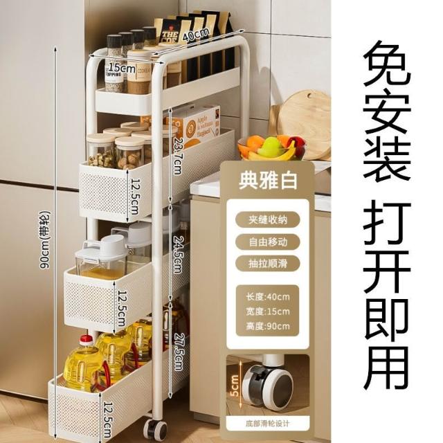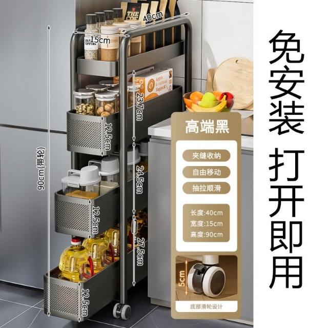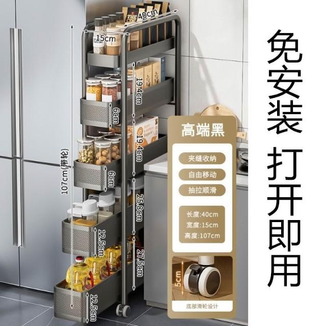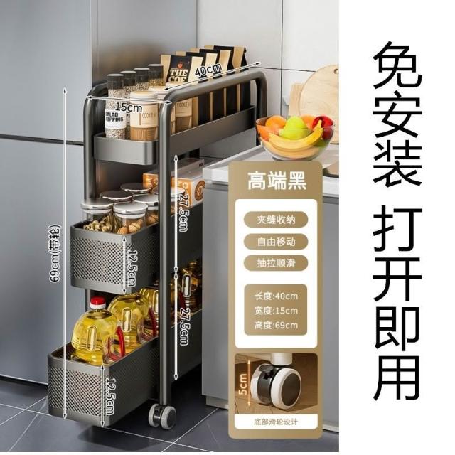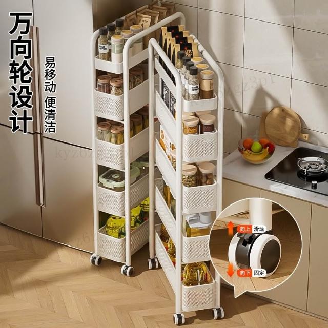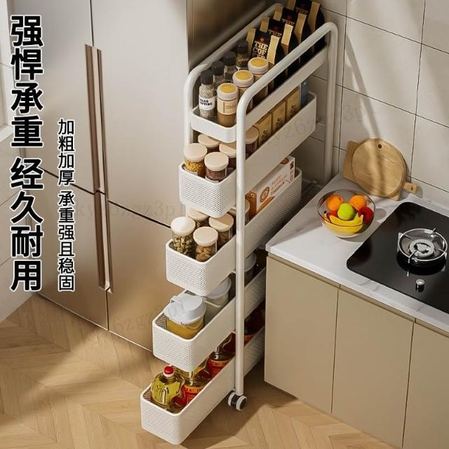 豫之曙廚房夾縫置物架冰箱側麵抽拉櫃衛生間小推車極窄縫隙收納櫃