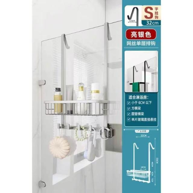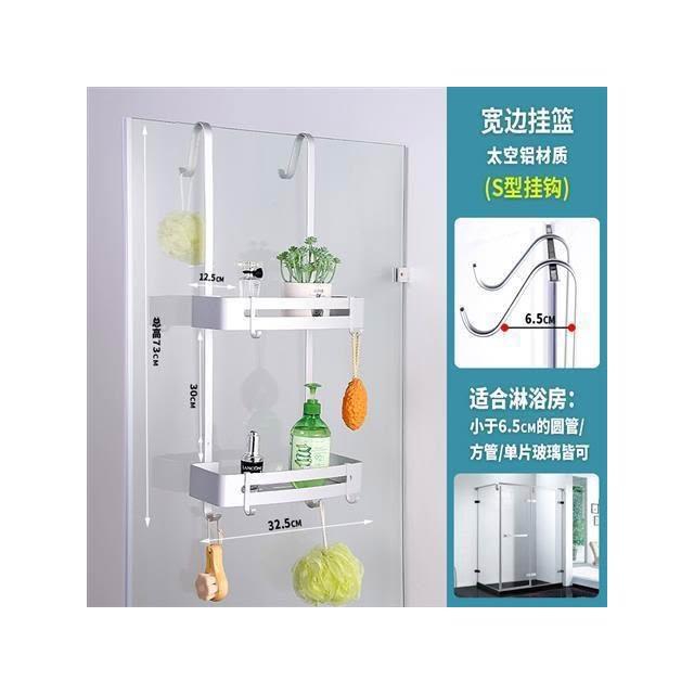 淋浴房置物架 浴室洗手間 304不銹鋼 壁掛 衝涼房掛籃 免打孔衛生間 收納架 兩層 免打孔