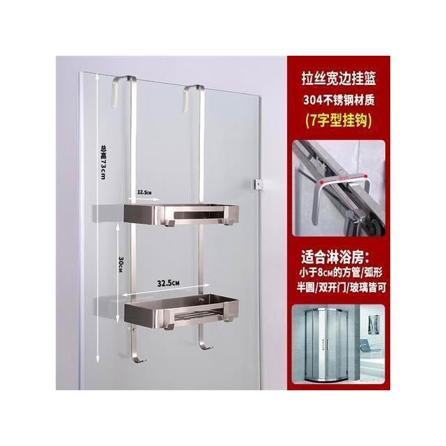 淋浴房置物架 浴室洗手間 304不銹鋼 壁掛 衝涼房掛籃 免打孔衛生間 收納架 兩層 免打孔