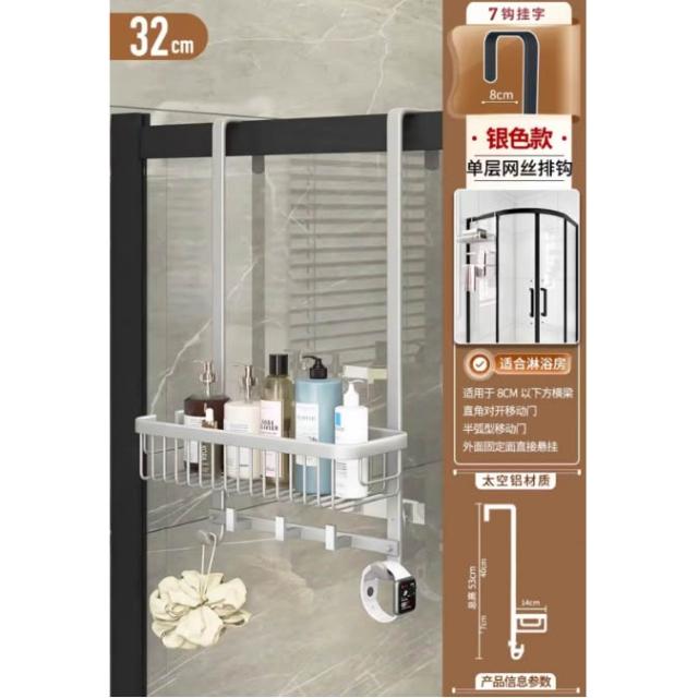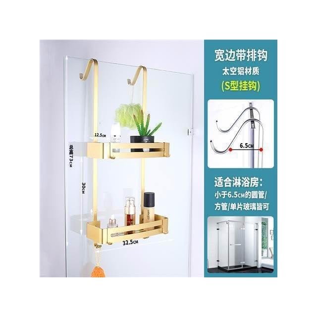 淋浴房置物架 浴室洗手間 304不銹鋼 壁掛 衝涼房掛籃 免打孔衛生間 收納架 兩層 免打孔