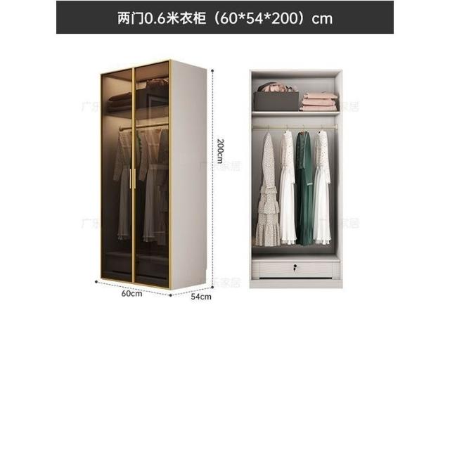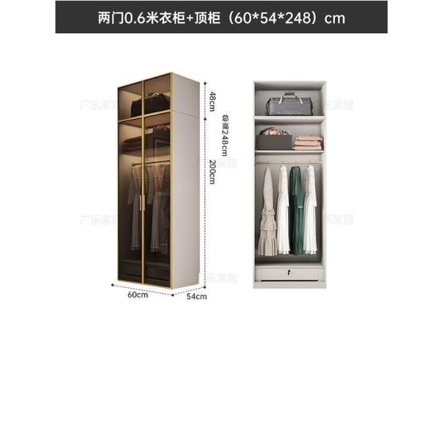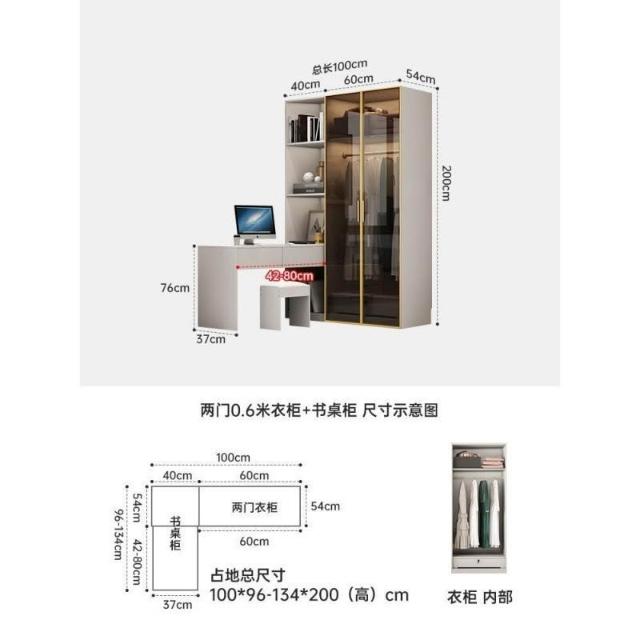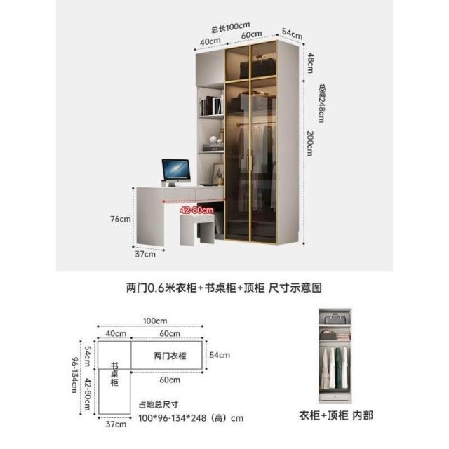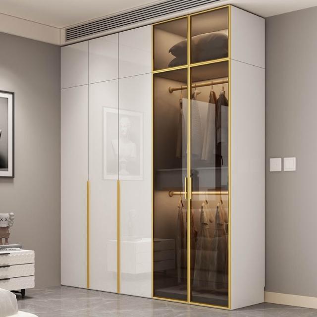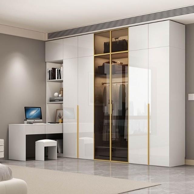 意式極簡衣櫃臥室傢用茶色鋼化玻璃門實木書桌一體大衣櫥轉角組閤