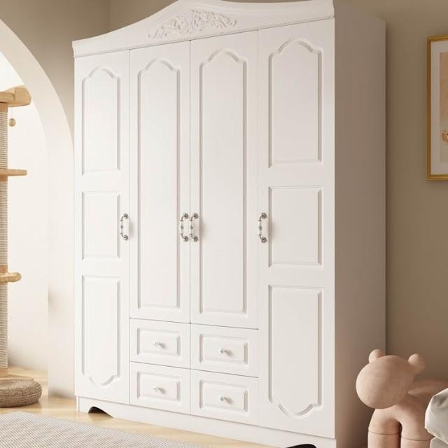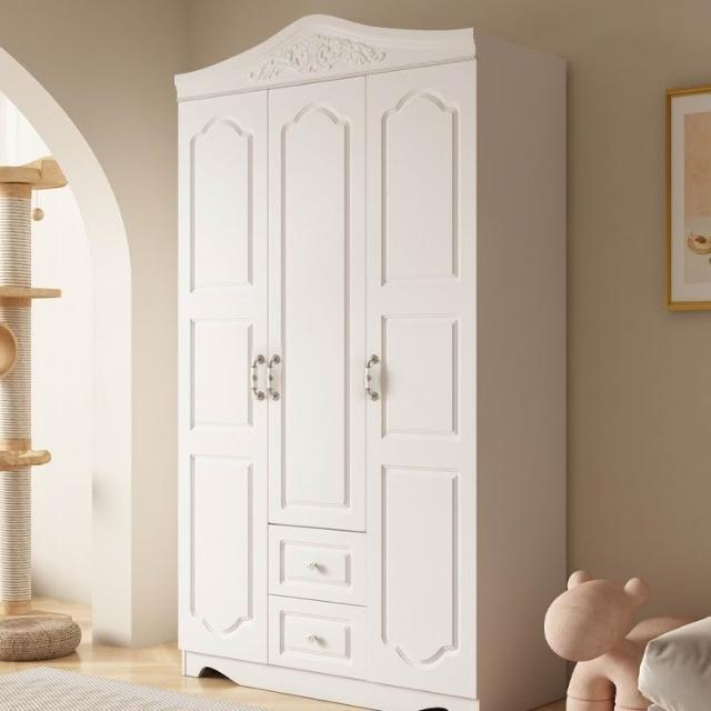 衣櫃傢用臥室歐式奶油白色實木女孩櫃子三門衣櫥小戶型公主衣服櫃
