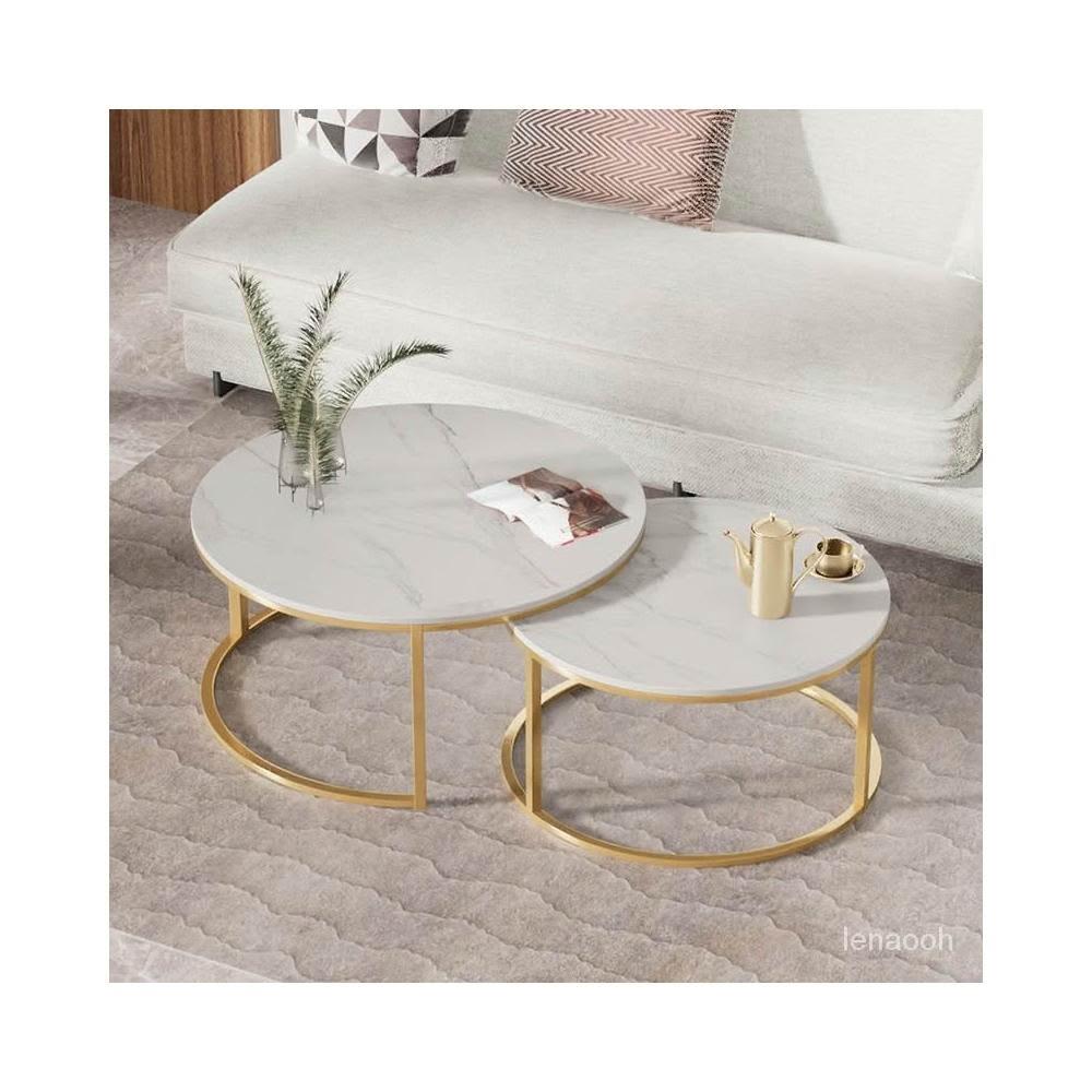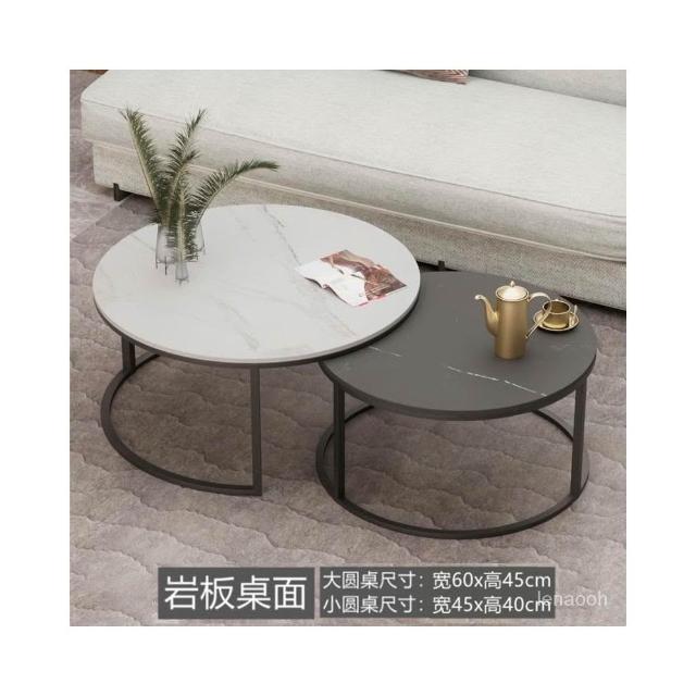 輕奢岩板茶几網紅小戶型家用客廳商務會客圓形大理石茶桌組合圓桌