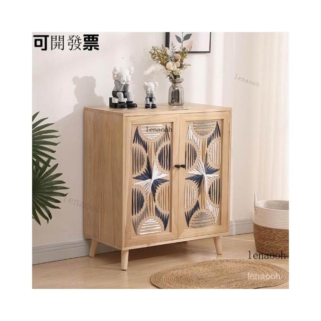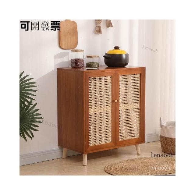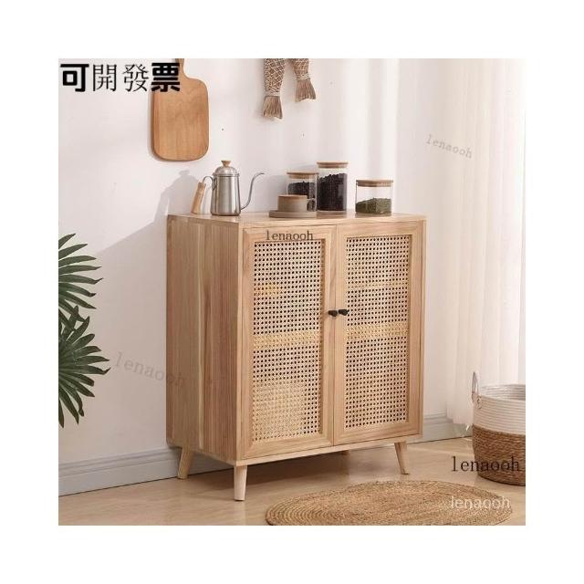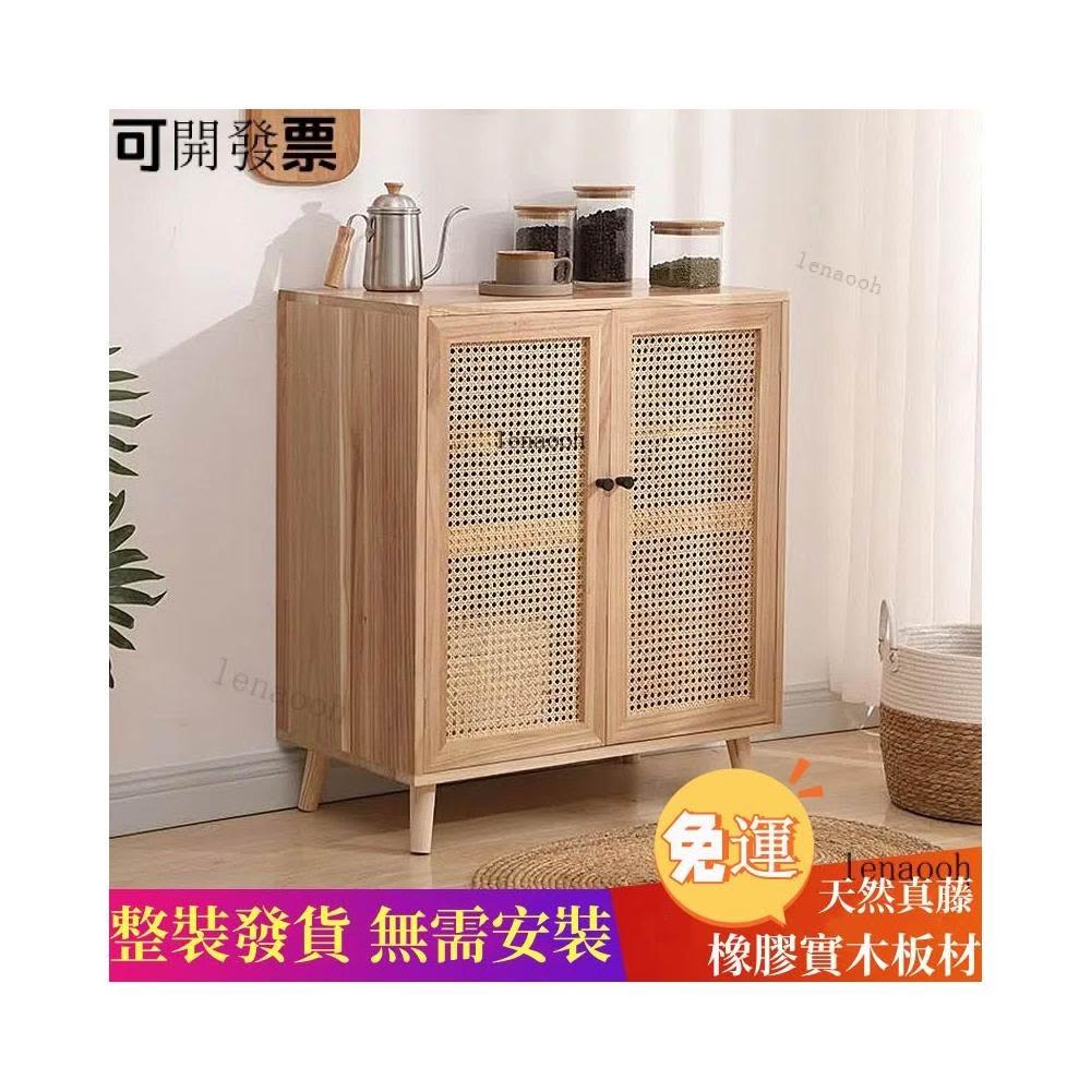實木餐邊櫃置物櫃傢用櫥櫃客廳靠墻橡膠實木櫃儲物櫃藤編儲物櫃 北歐實木餐邊櫃 日式邊櫃