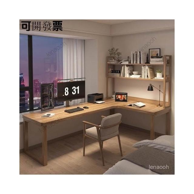 書桌 實木雙人轉角書桌一體書櫃電腦桌組閤辦公桌家用拐角臥室工作臺