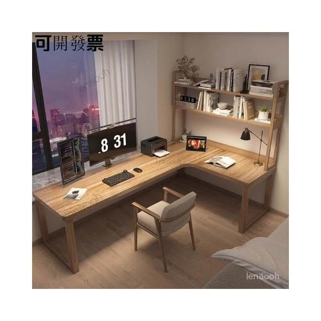 書桌 實木雙人轉角書桌一體書櫃電腦桌組閤辦公桌家用拐角臥室工作臺