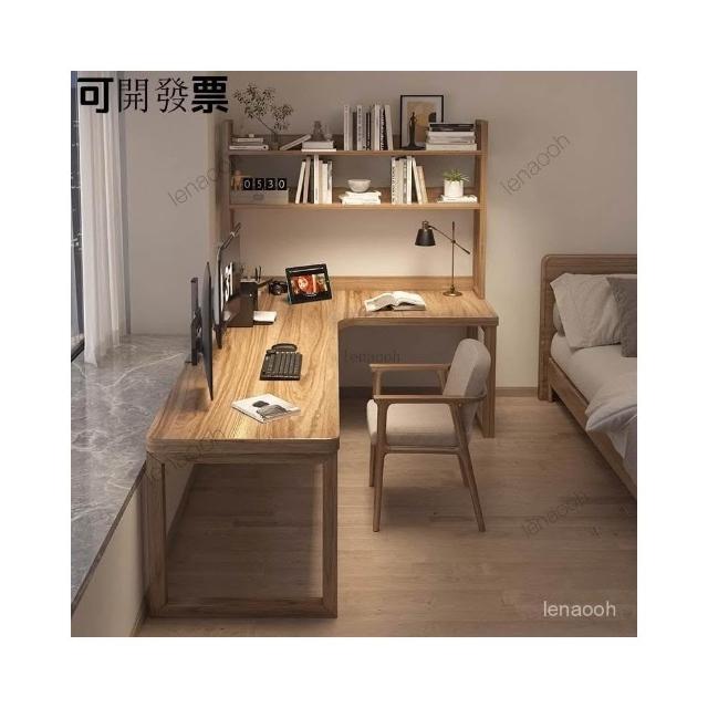 書桌 實木雙人轉角書桌一體書櫃電腦桌組閤辦公桌家用拐角臥室工作臺