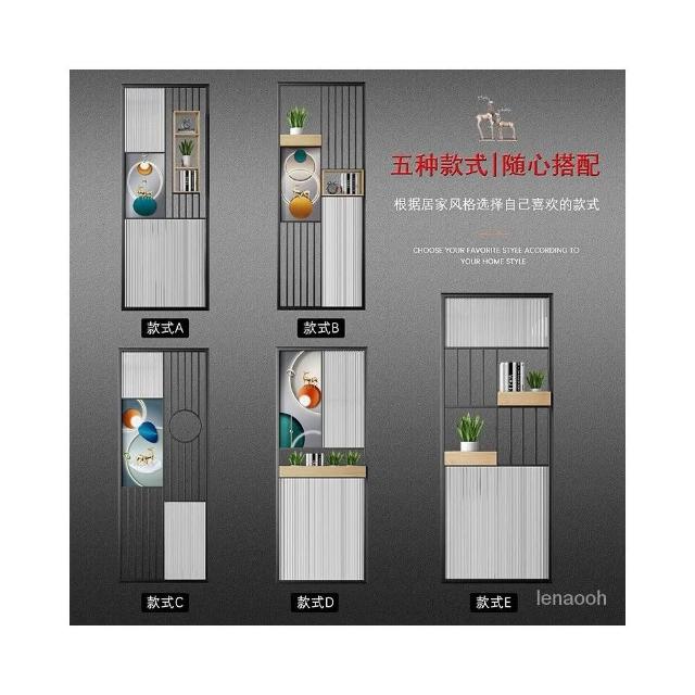 北歐現代簡約長虹玻璃隔斷屏風鐵藝玄關進門輕奢客廳衛生間格柵櫃