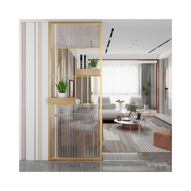 北歐現代簡約長虹玻璃隔斷屏風鐵藝玄關進門輕奢客廳衛生間格柵櫃