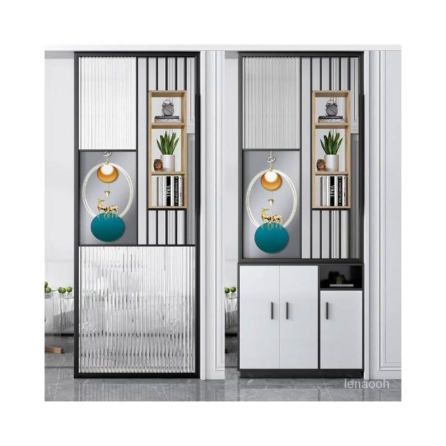 北歐現代簡約長虹玻璃隔斷屏風鐵藝玄關進門輕奢客廳衛生間格柵櫃