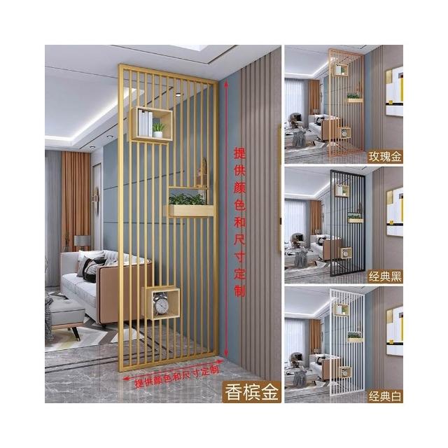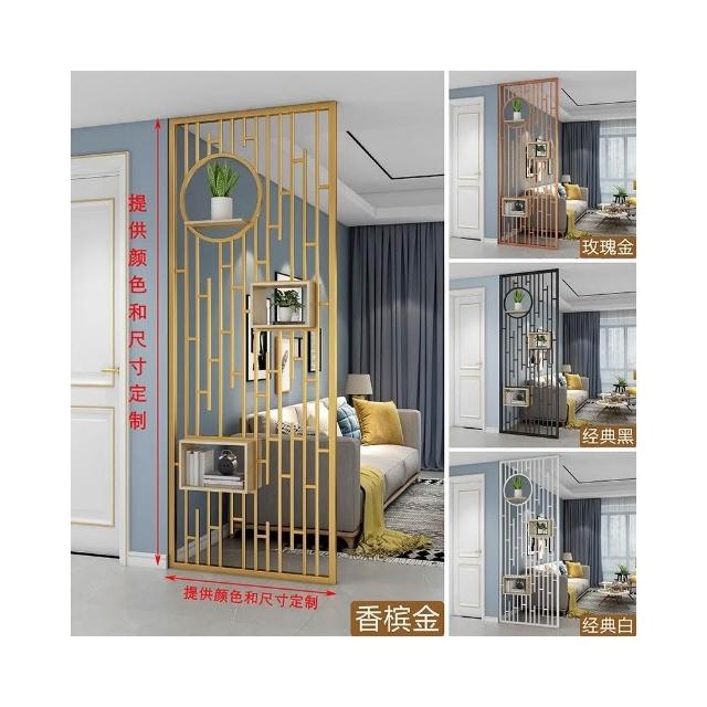 輕奢屏風隔斷客廳網紅鐵藝玄關柜創意現代簡約格柵鏤空金屬不銹鋼屏風置物