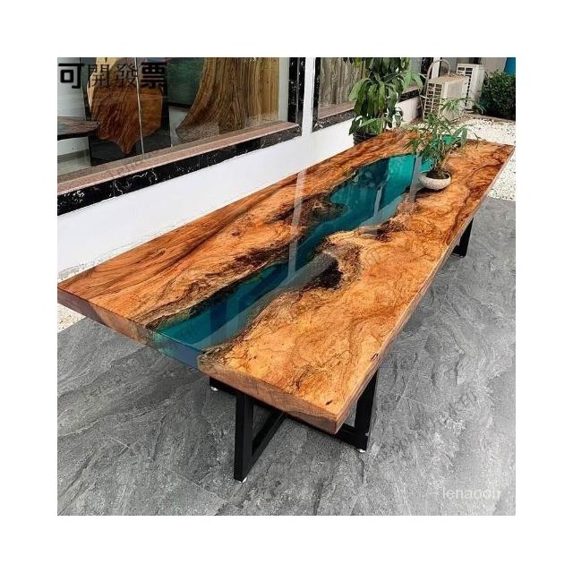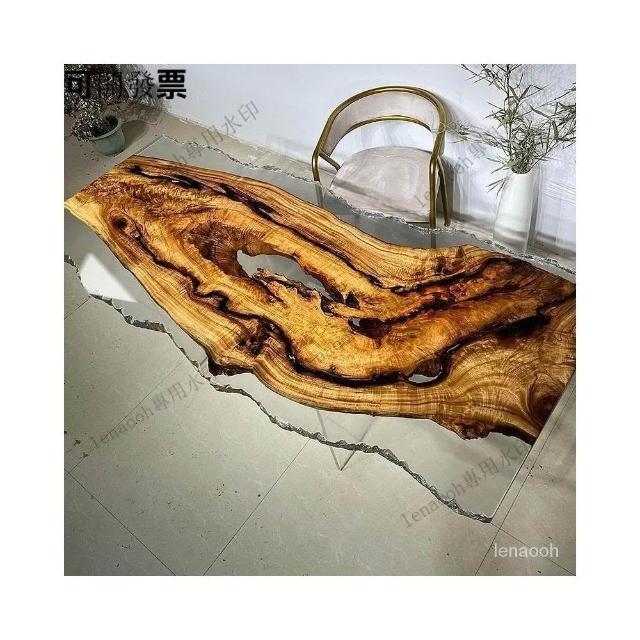 環氧樹脂河流桌海浪桌子餐桌茶幾原木大闆茶桌書桌樹脂膠桌麵