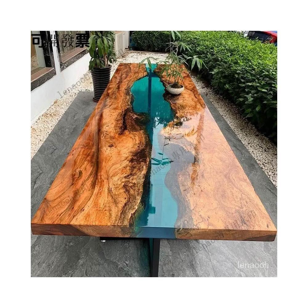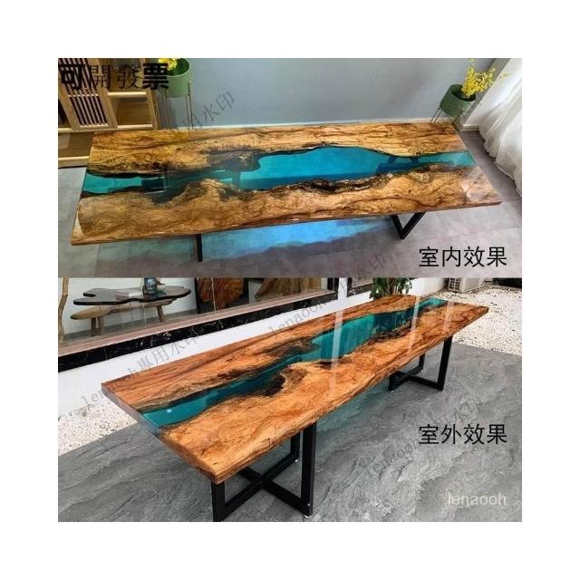 環氧樹脂河流桌海浪桌子餐桌茶幾原木大闆茶桌書桌樹脂膠桌麵