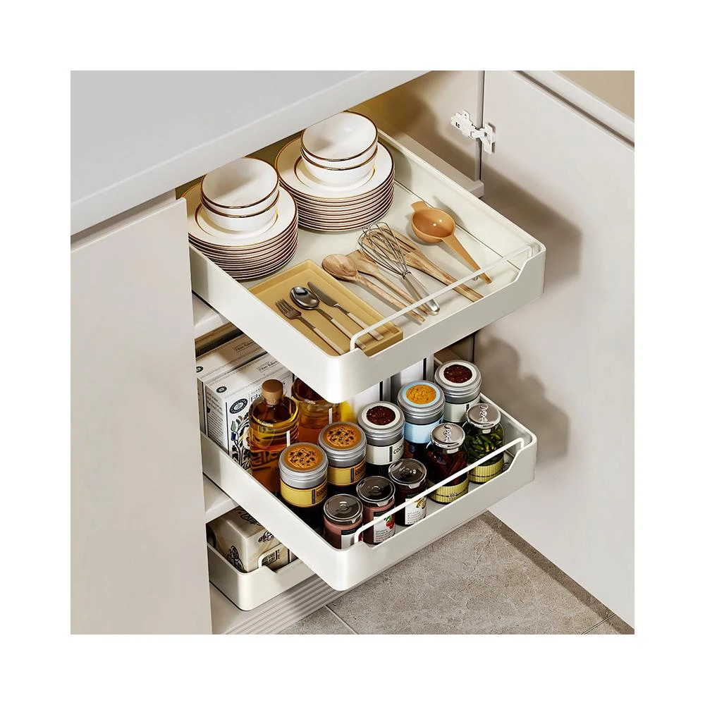 免打孔厨房抽拉式置物架下水槽拉篮橱柜子滑轨抽屉收纳盒调味料架