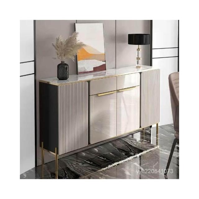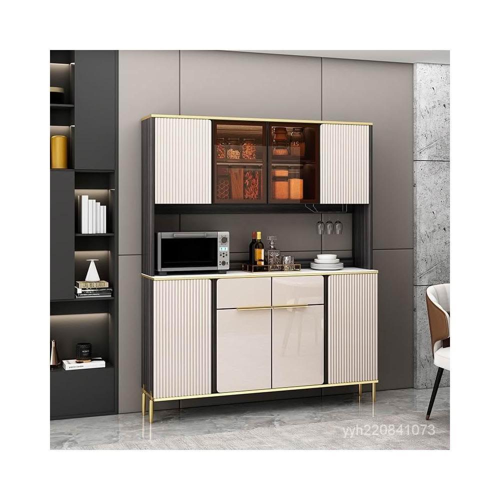 輕奢餐邊櫃多功能客廳儲物櫃餐廳巖闆酒櫃靠墻一體櫃茶水廚房碗櫃