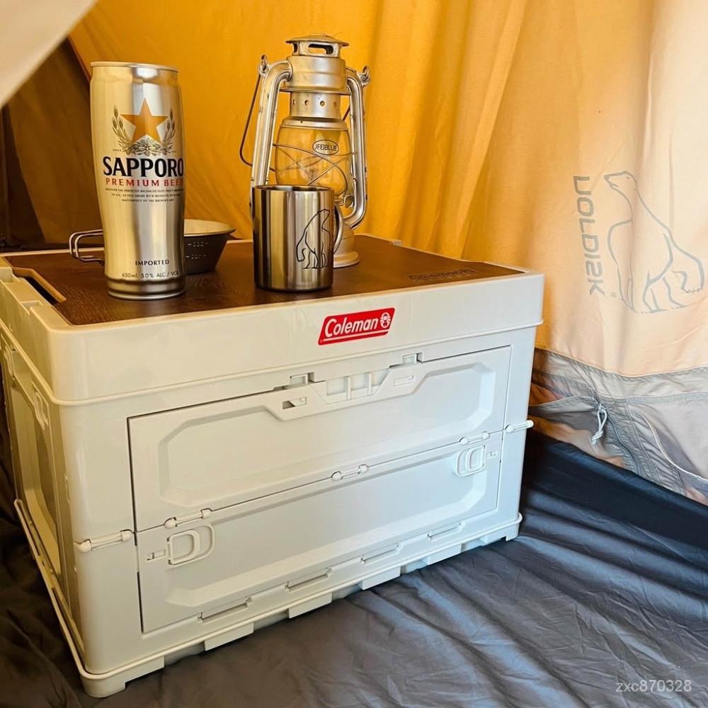 露營收納箱 車用收納 日單雜誌科勒曼戶外coleman外折疊收納箱汽車後備箱露營四邊可開折疊箱 露營裝備 露營 收納