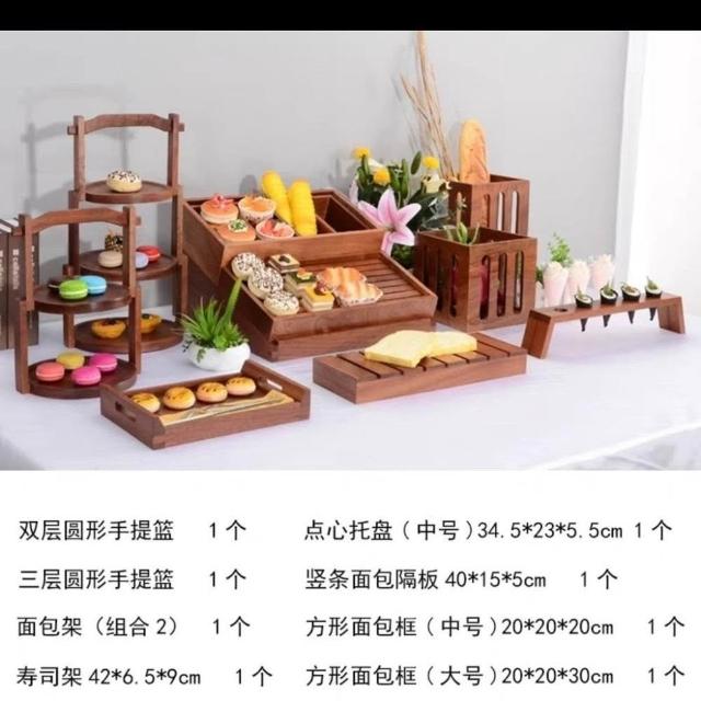 中式甜品臺擺件蛋糕點心展示架木質甜點糕點架子麵包託盤茶歇擺臺 展示架 陳列架 架子 托盤