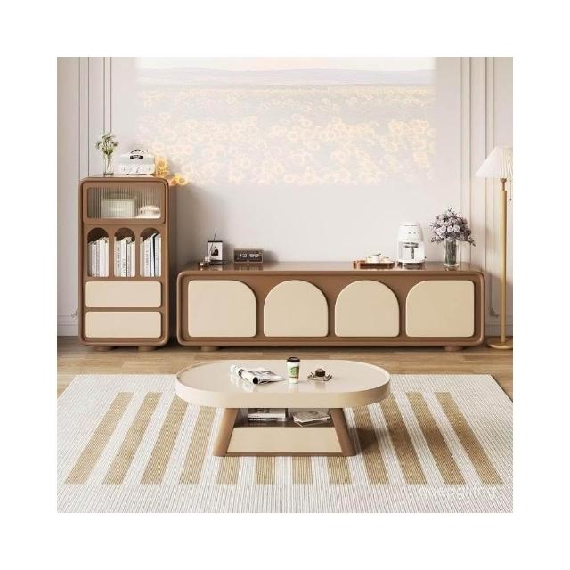 輕奢電視櫃 法式茶幾電視櫃落地高款客廳簡約小戶型儲物櫃奶油風電視櫃組閤電視櫃 儲物櫃 收納櫃 地櫃 墻櫃