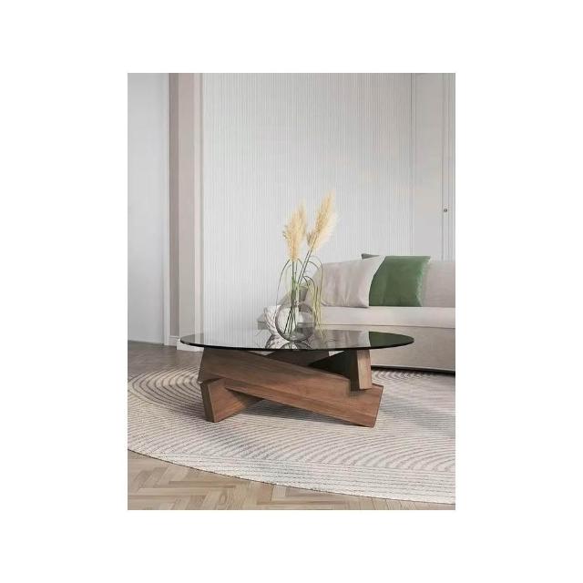 玻璃茶幾 巖闆 小戶型子母茶幾簡約鋼化玻璃圓形茶幾現代北歐風小戶型實木茶桌個性輕奢客廳傢用 子母茶几