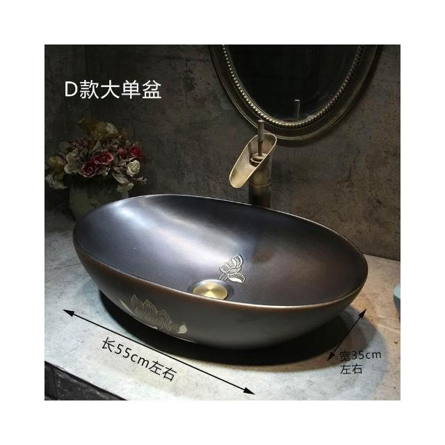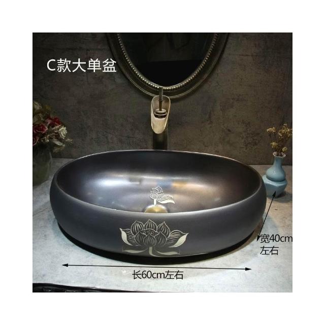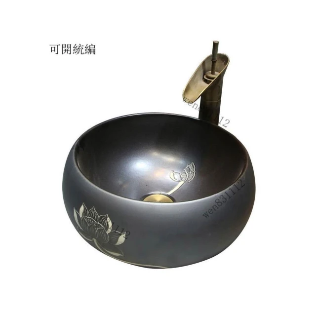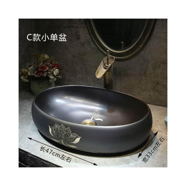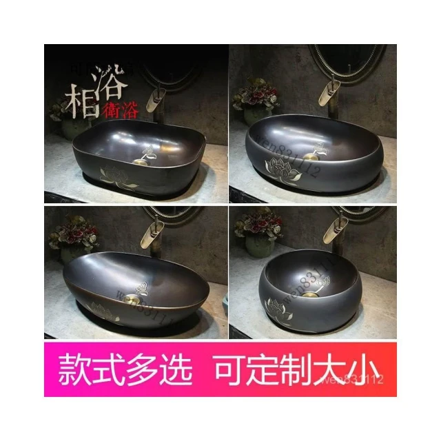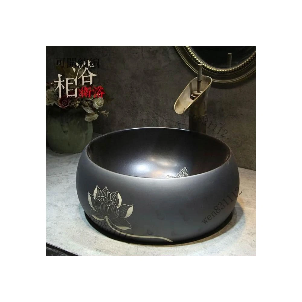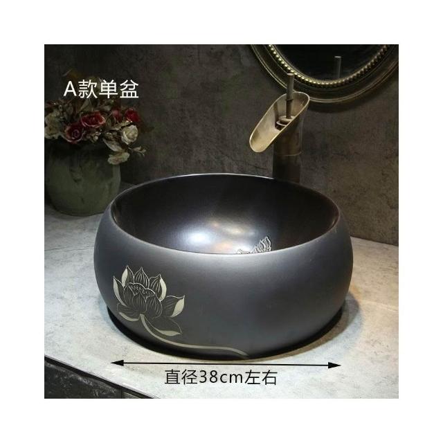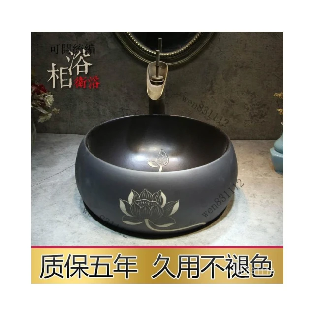 禪意中式陶瓷臺上盆深色荷花仿古洗手盆傢用圓形古風洗臉盆藝術盆