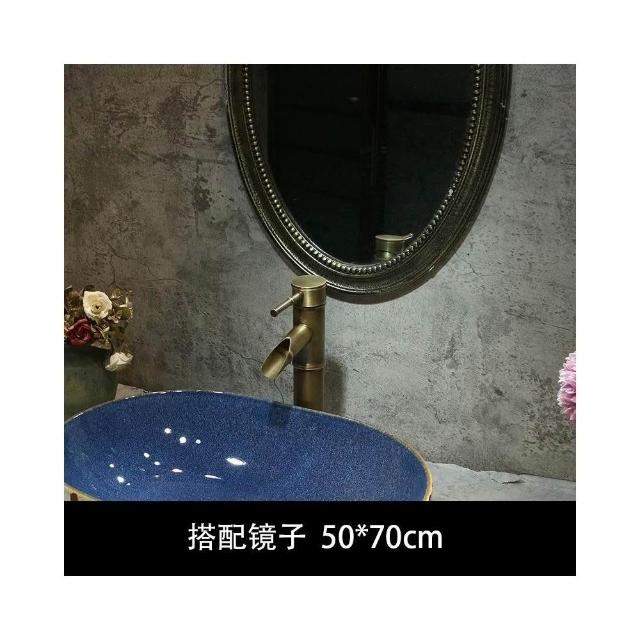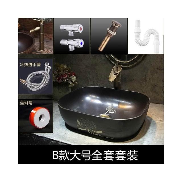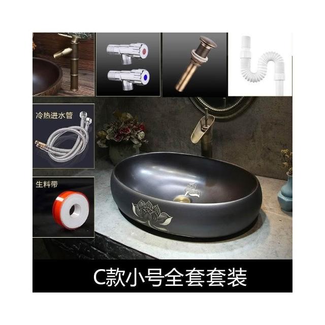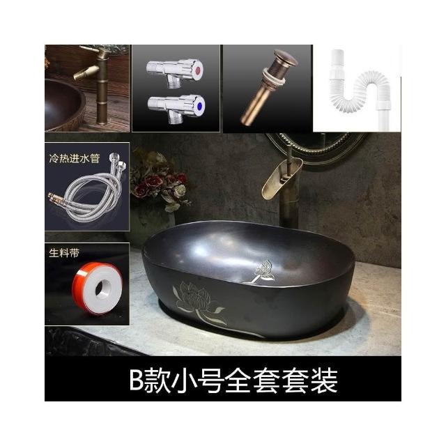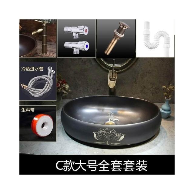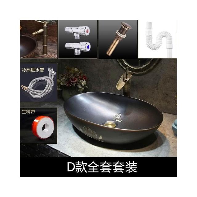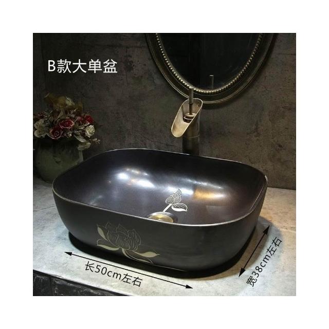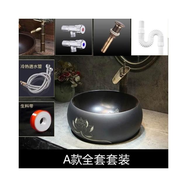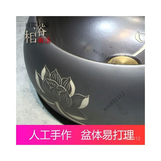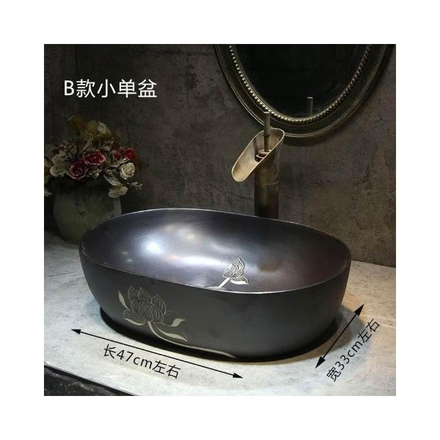 禪意中式陶瓷臺上盆深色荷花仿古洗手盆傢用圓形古風洗臉盆藝術盆