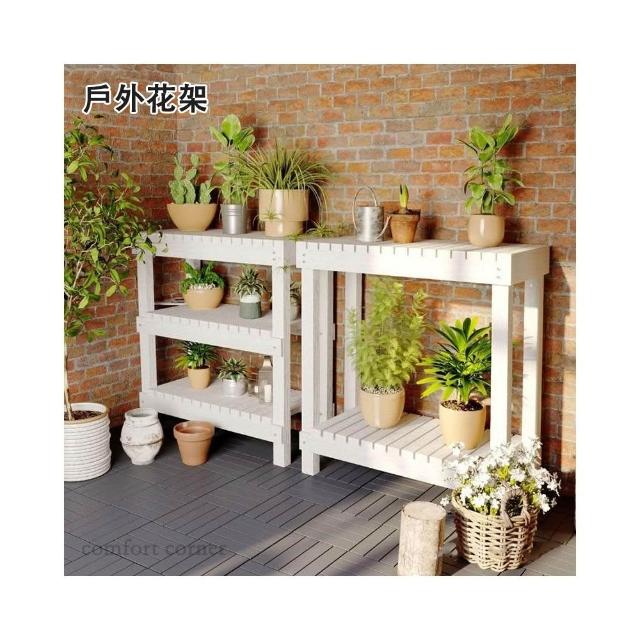 戶外花架 防腐木室外白色置物架戶外種菜盆架子多層